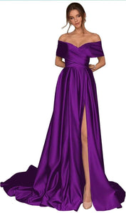 G907,Dark purple Satin Slit Cut Shoot Gown, Size (All)pp