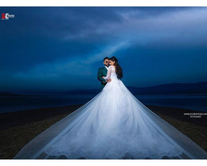 W161 (2),White Sleeves Prewedding Shoot Trail Gown, Size (XS-30 to XL-40)