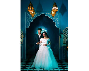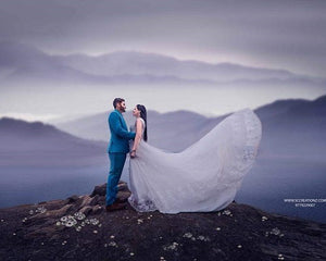 W157, White Floral Prewedding Shoot Trail Gown, Size (XS-30 to XL-40)