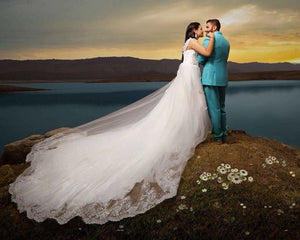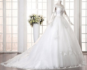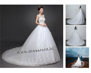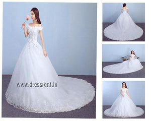 W151 (2), White Off-Shoulder Veil Princess Trail Wedding Gown, Size (XS-30 to XL-40)