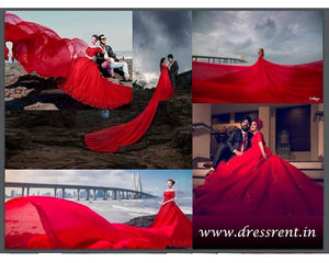 G129 (3), Red Offshoulder half sleeves Infinity Prewedding Shoot Trail Ball Gown, Size (XS-30 to L-38)