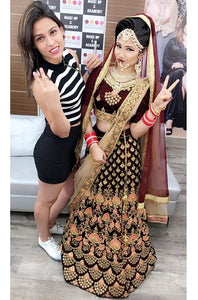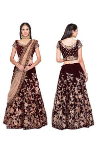 L11, Sabhyasachi style Maroon Velvet Bridal Lehenga, Size (XS-30 to XL-40)