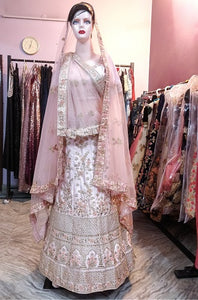 L82, Peach Pastel Golden Thread Work Bridal Lehenga, Size (XS-30 to XL-40)