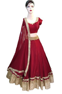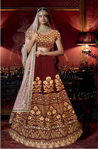 L35,Maroon Bridal Lehenga, Size (XS-30 to XL-40)