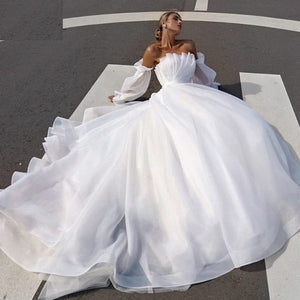 W152, White Tube Top Ruffle Sleeves Trail Shoot Gown, Size (ALL) pp