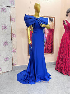 G2124, Royal Blue Body Fit Shoot Trail Gown, Size (All)