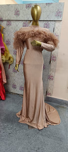 G1048, Saddle Brown Body Fit Shoot Trail Gown, Size (ALL)