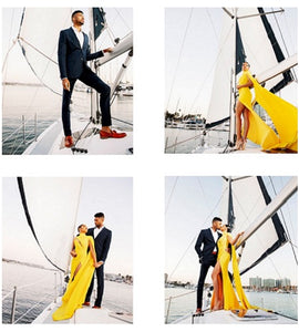 G1075, Yellow slit cut long trail gown ,Size (ALL)pp