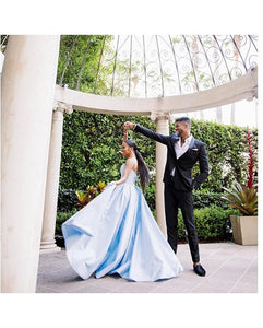 G1076, Greyish Blue satin slit cut gown , Size(ALL)pp