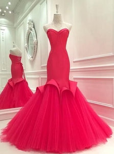 G118, Red Tube Top Layered Fish Cut Trail gown (SIZE ALL)pp