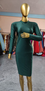 G921, Bottle Green Lycra Body Fit Evening Short Length Gown, (All Sizes)