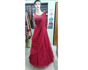 G103, Wine Shimmer Saree Gown, Size (XS-30 to XXXL-46)