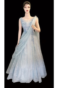 G172, Sweet Sky Blue Indo-Western Saree Gown, Size (XS-30 to L-38)