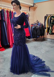 G321 (3), Blue Top Sequence with Bottom Lace Cutout evening Gown, Size (All)