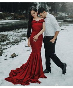 G447, Red Wine Mermaid Pre Wedding Shoot Trail Gown, Size(All)pp