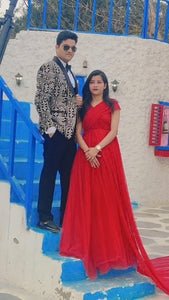 G62, Red Wine Ruffled Prewedding Shoot Gown, Size (All)