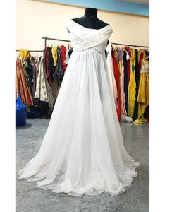 W719 , White prewedding One Shoulder Gown, Size (All)