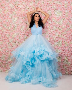 G2126, Ice Blue Frilled Shoot Gown Size (All)