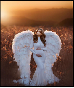 W2030, White Trail Lycra Body Fit Maternity Gown, Size (All)