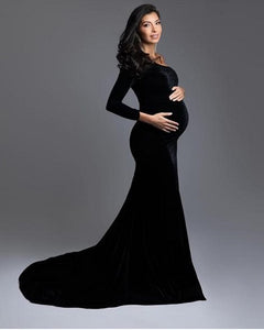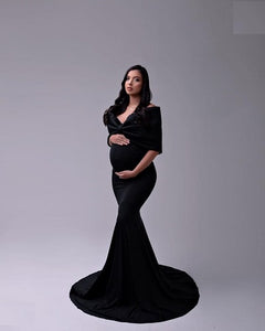 G1003 Black Slit Cut Maternity Shoot Trail Gown, Size (ALL)