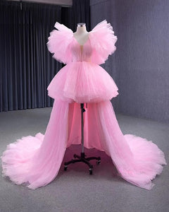 G788, Light Pink High Low Tiered Ruffled Long Trail Gown Size(ALL)pp