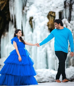 G328, RoyalBlue luxury Ruffle Long Trail Gown Size(ALL)pp