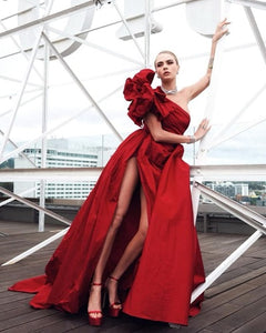 G25, Red Wine Satin One Shoulder slit cut evening gown (SIZE ALL)pp