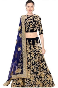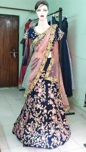 L18, Katrina Navy Blue Velvet Dabka Work Lehenga, Size (XS-30 to XL-40)