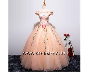 G11, Peach Floral Ball Gown, Size (XS-30 to L-38)