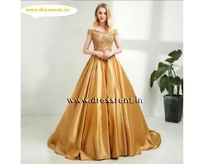 G176, Golden Off Shoulder Satin Ball Gown, Size (XS-30 to L-38)