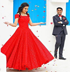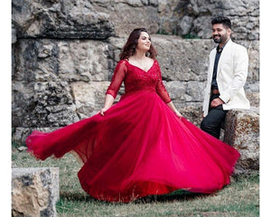 G135 (5), Wine Prewedding Shoot Semi Off Shoulder Ball gown infinity, Size (XS-30 to L-38))