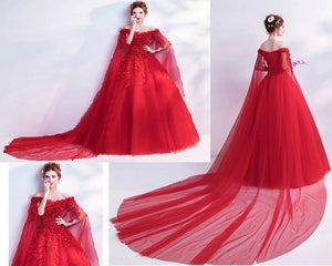 G126 (2), Red Off Shoulder Veil Trail Gown, (All)
