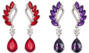 Beautiful Colorful Female Long Big Crystal Earrings Cuffs Fashion Jewelry in Red and Purple Color