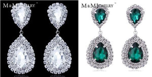 Waterdrop Crystal Bridal Silver and Green Long Drop Earrings