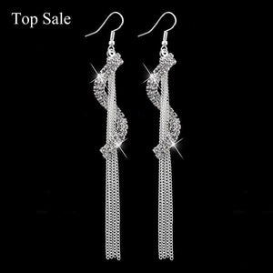 S-Shape Long Drop Luxury Vintage Austrian Crystal Tassel Earrings