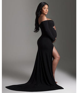G106 (3), Black Slit Cut Maternity Shoot Trail Baby Shower Gown, Size(All)