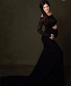 G1053, Black Full Sleeves Maternity Shoot Trail Gown (All Sizes)