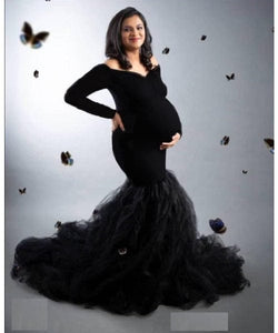 G331, Black Fish Cut Maternity Shoot Baby Shower Gown, Size (All)