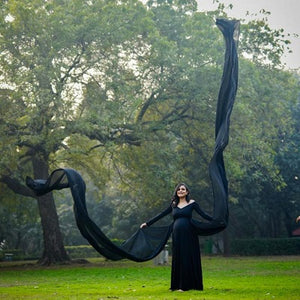 G501 , Gerua Black Maternity Shoot Infinity Long Trail Gown, Size (All)