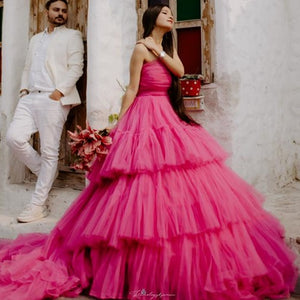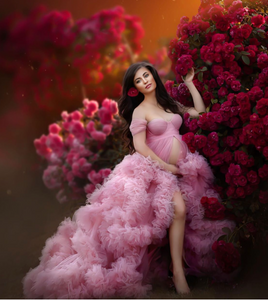 G323, Hot Pink Puffy Cloud Maternity Shoot Trail Gown, (All Sizes)