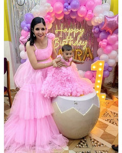 G2122, Pink Frilled Mother-Daughter Gown, Size (ALL)