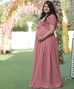 G439 , Peach Colour Maternity Shoot Gown, Size (All)