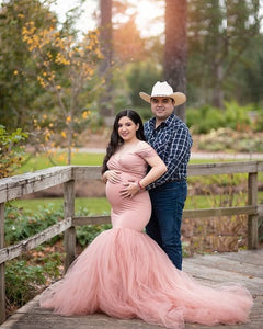 G1047, Nude Pink Body Fit Ruffled Maternity Shoot Trail Gown, Size (ALL)