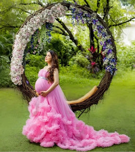 G322, Pink Multi Shade Maternity Shoot Gown, Size (All)