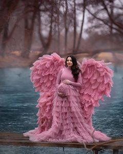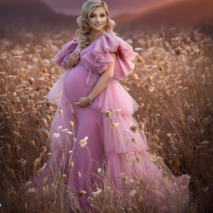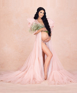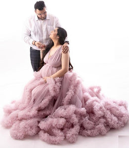 G2054, Dusty Peach Luxury Ruffled Maternity Shoot Trail Gown, Size (All)pp