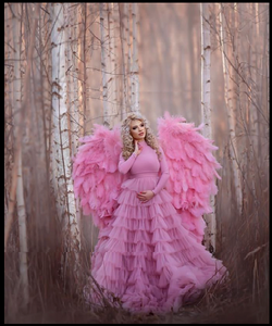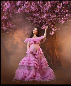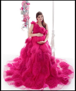 G2027,Pink Frill Maternity Trail Baby Shower Gown, Size (All)pp