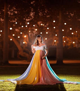 G2053, White Multi Colour Maternity Shoot Trail Gown, Size (All)pp