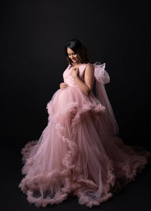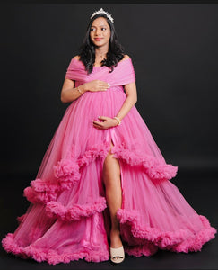 G525, Pink Ruffled Maternity Shoot Gown, Size (All)pp