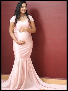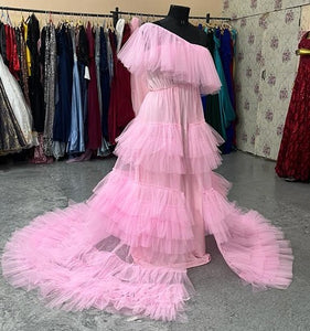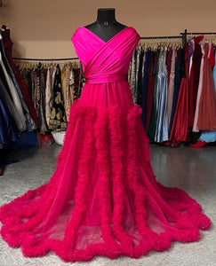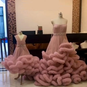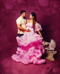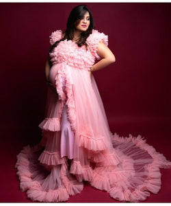 G1082, pink Ruffled Maternity Shoot Trail Gown, Size(All)pp