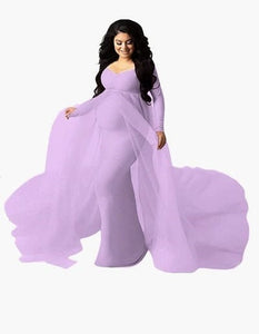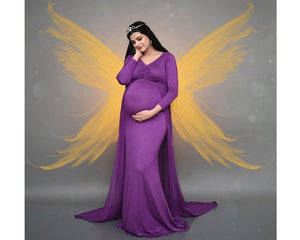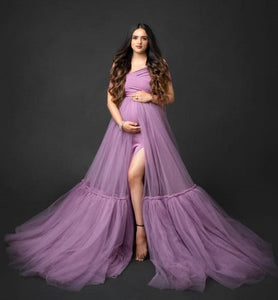 G708(2), Purple Maternity Shoot Baby Shower Trail Gown, Size (All)